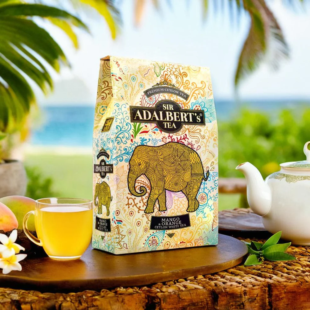 Skład: Biała herbata cejlońska, kawałki mango, skórka pomarańczowa, naturalny aromat mango, naturalny aromat pomarańczy.