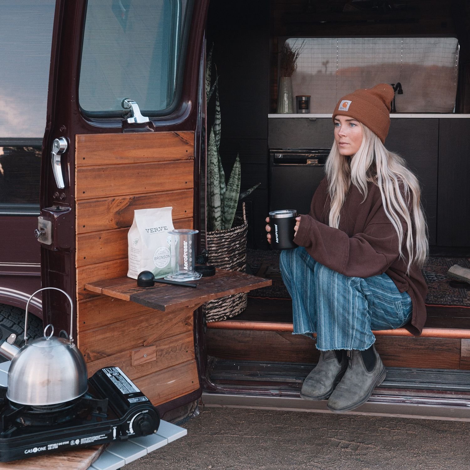 Kubek termiczny AeroPress o pojemności 350 ml to idealne naczynie do picia kawy dla osób będących w ciągłym ruchu. Podwójne ścianki ze stali nierdzewnej z izolacją próżniową długo utrzymują temperaturę gorących i zimnych napojów. Zaprojektowany z myślą o trwałości, kubek doskonale sprawdza się w podróży, podczas codziennych dojazdów czy na świeżym powietrzu. Pokrywka z suwakiem zapobiega przypadkowemu rozlewaniu – nie czyni go jednak w pełni szczelnym. Szeroka, stabilna podstawa umożliwia bezpośrednie parzenie kawy przy użyciu standardowego AeroPressa, co gwarantuje wygodne przygotowanie kawy w każdych warunkach. Dodatkowo można go myć w zmywarce, co ułatwia czyszczenie.