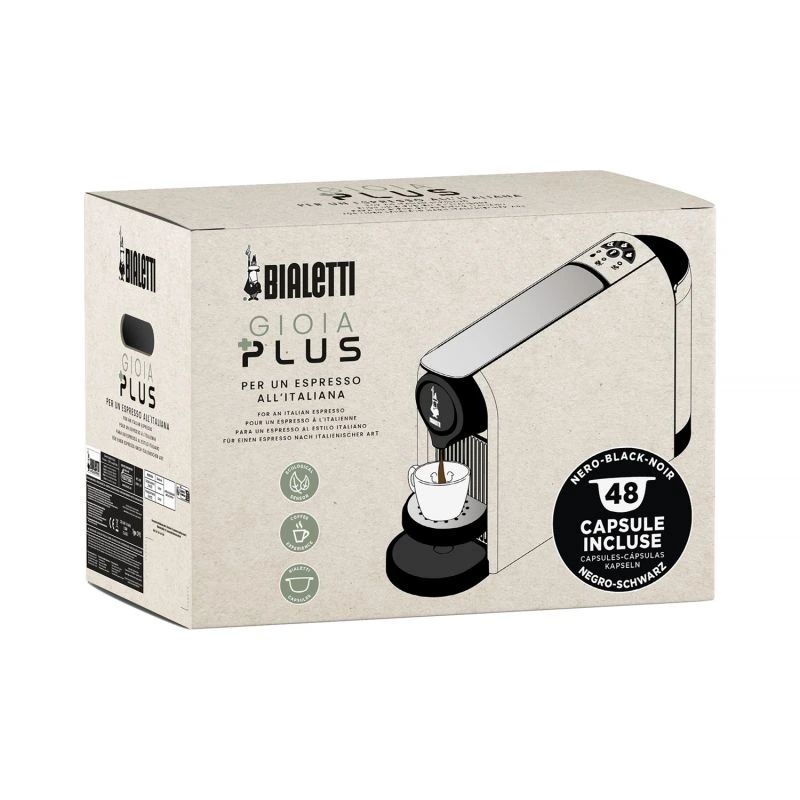 Bialetti – ekspres kapsułkowy Gioia Plus – Czarny + 48szt kapsułek NAPOLI