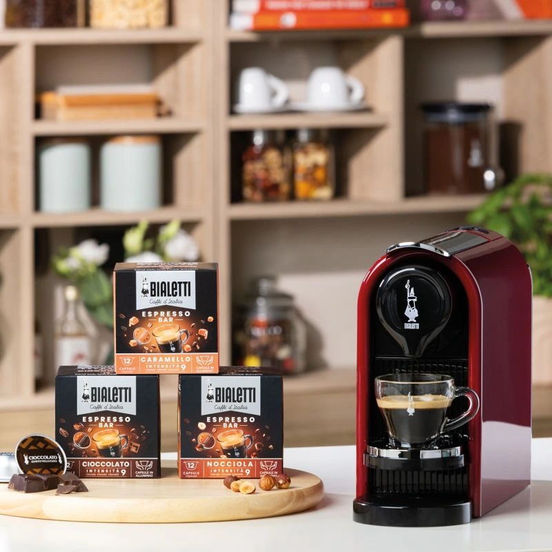 Regulator temperatury i długości kawy oraz kontrolki informujące o potrzebach urządzenia (braku wody, pełnym pojemniku na kapsułki czy konieczności odkamieniania) współpracują z nowym systemem ekstrakcji Bialetti 2.0, który zapewnia kremowe, aksamitne espresso jak z włoskiej kawiarni.