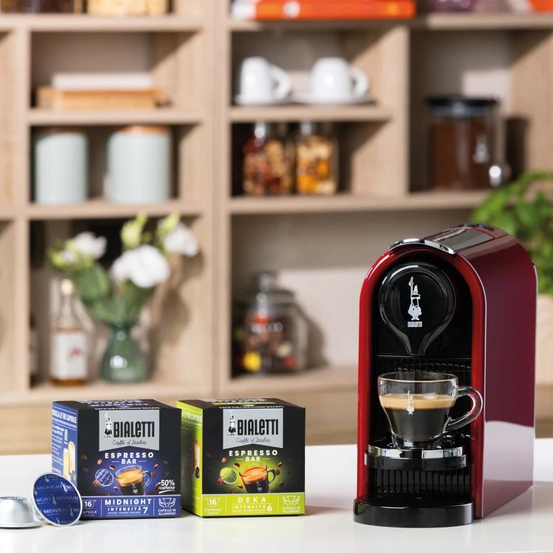 Bialetti – ekspres kapsułkowy Gioia Plus – Czerwony + 48szt kapsułek NAPOLI