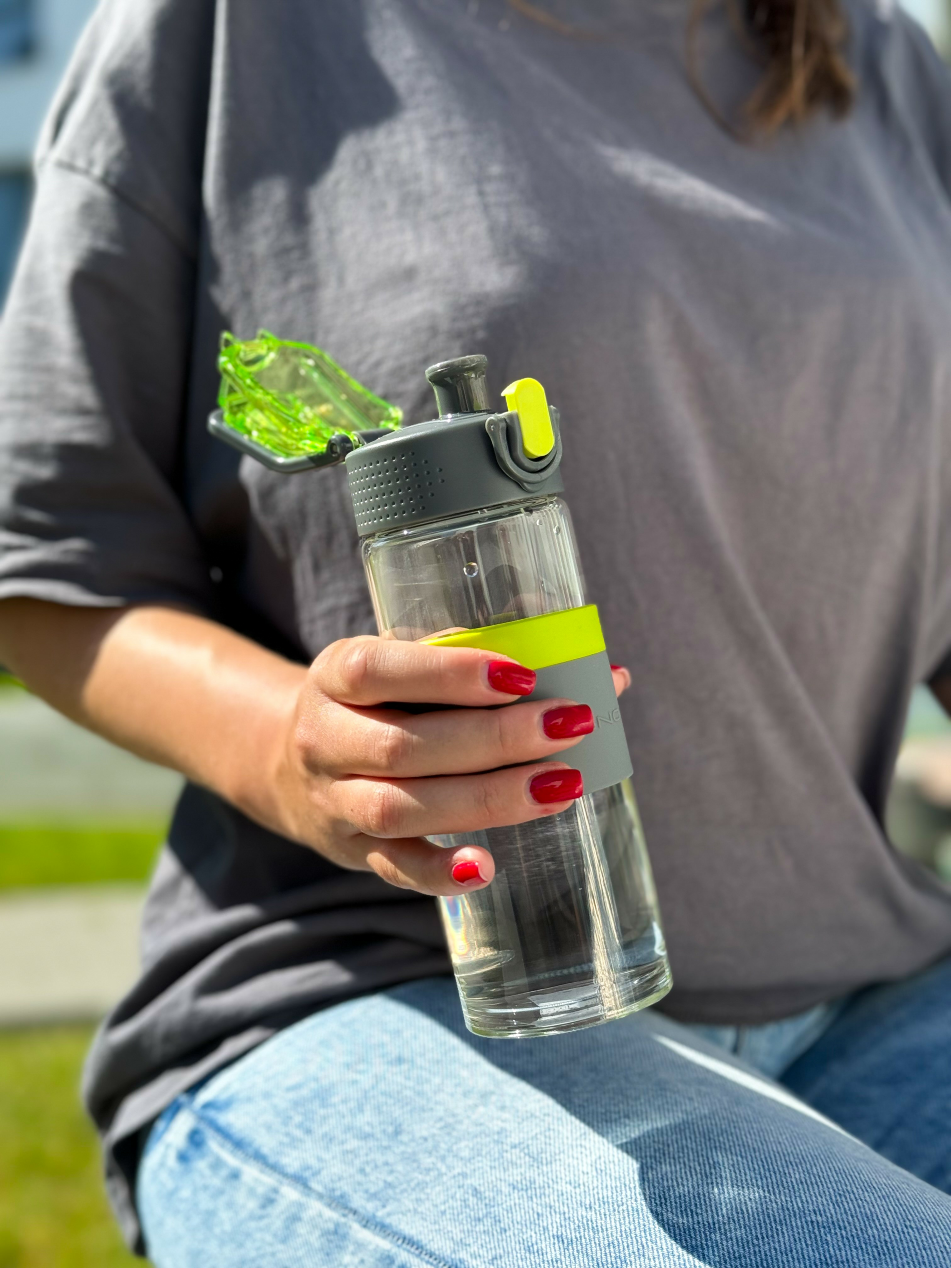 Szkło borokrzemowe, z którego wykonana została butelka, jest wyjątkowo odporne na uszkodzenia i zarysowania. Niska waga oraz praktyczny kształt sprawiają, że wygodnie przetransportujesz butelkę w torebce, sportowej torbie czy w uchwycie samochodowym. Wygodna, polimerowa opaska gwarantuje pewny chwyt.