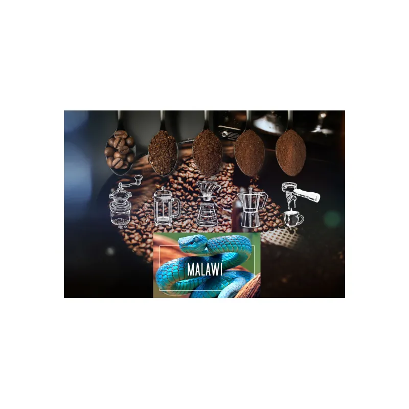 Kawa 100% Arabica pochodzącej z Malawi o intensywnym smaku oraz aromacie. Produkt marki Eight Café, idealny dla miłośników kawy wysokiej jakości.