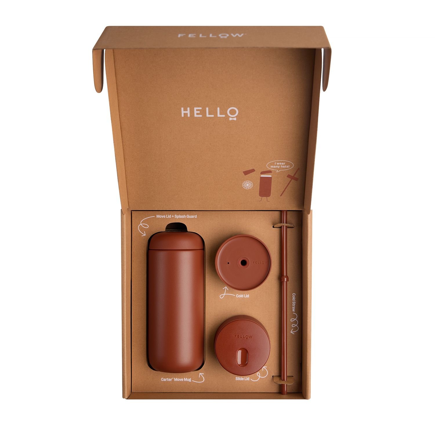 Carter Move Mug od marki Fellow to wyjątkowy kubek termiczny w kolorze sienna, który zachwyca designem i funkcjonalnością. W zestawie otrzymujesz trzy różne zakrętki, dzięki którym możesz dopasować kubek do swoich potrzeb. Standardowa zakrętka Move ze Splash Guard zapewnia szczelność i komfort picia jak z klasycznego kubka. Carry Lid to solidna pokrywka z uchwytem, idealna w podróży. Z kolei Cold Lid ze słomką wykonana z wytrzymałego Tritanu sprawdzi się doskonale do zimnych napojów, szczególnie w upalne dni.
