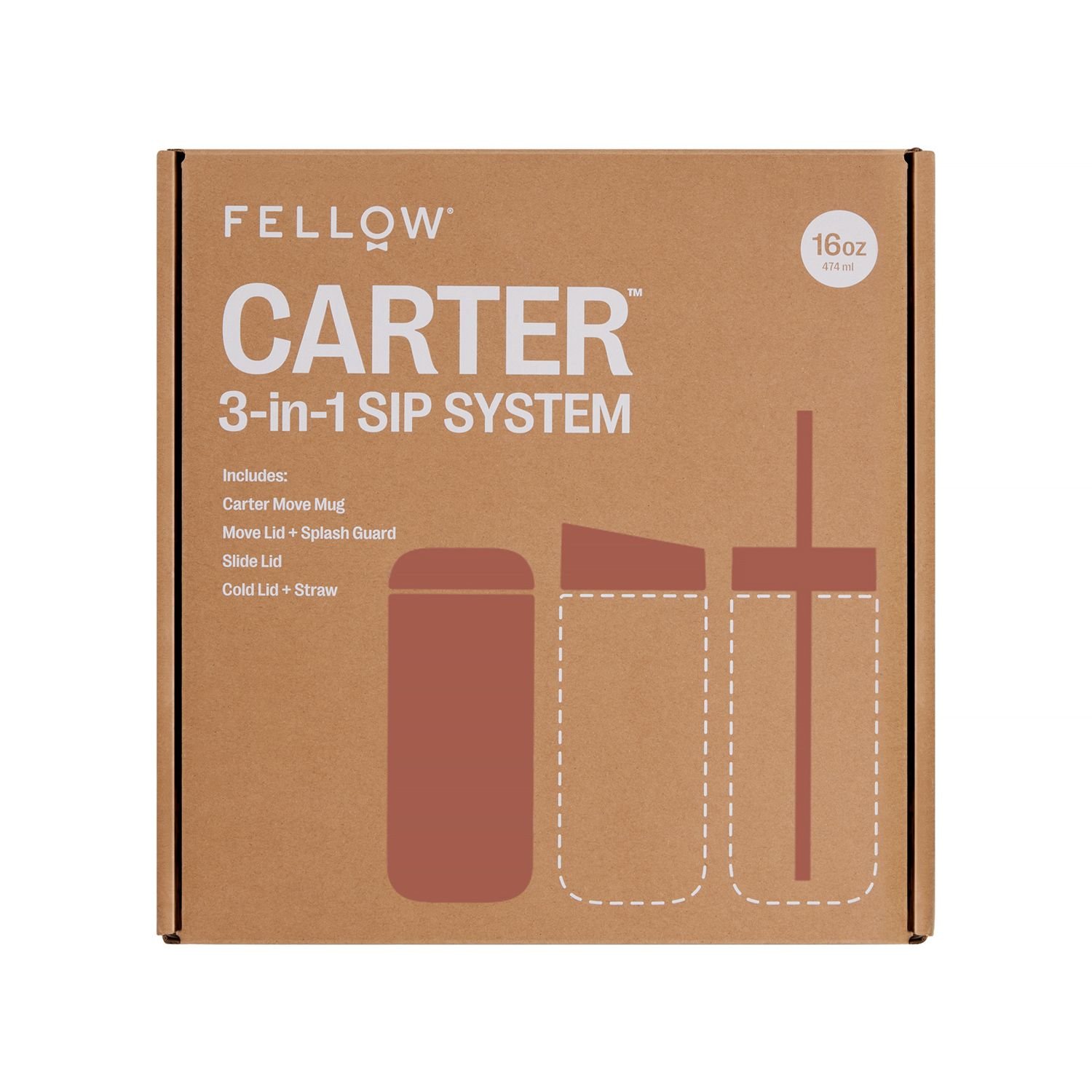 Fellow Carter Move Mug 3-in-1 Sip System Sienna 473 ml – kubek termiczny z trzema zakrętkami