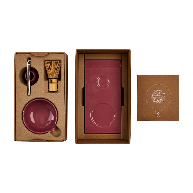 Kompletny zestaw do przygotowywania matchy zaprojektowany z myślą o zmysłach. Od wygodnego kształtu ceramicznej miski po przyjemny dźwięk bambusowej trzepaczki — każdy element wzmacnia doznania podczas przygotowywania matchy. W skład zestawu wchodzą – ceramiczna miska, stojak na trzepaczkę i taca, bambusowa trzepaczka oraz stalowa łyżka i sitko — wszystko zaprojektowane tak, aby stworzyć rytuał, który można poczuć wszystkimi zmysłami.