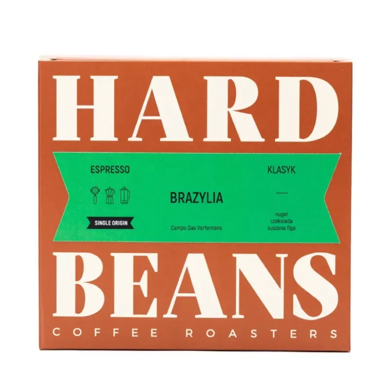 Hard Beans Brazylia Campo Das Vertentes to elegancka, klasyczna kawa 100% Arabika pochodząca z górzystego regionu Campo das Vertentes w Brazylii. Wyróżnia się delikatnym, zrównoważonym profilem smakowym z nutami nugatu, suszonej figi i czekolady. Ziarna pochodzą z kolektywu Sancoffee, pozyskiwane są w modelu direct trade – bezpośrednio od producentów. To idealna kawa do codziennego espresso, kawiarki lub french pressa – harmonijna, rześka i niezwykle aromatyczna.