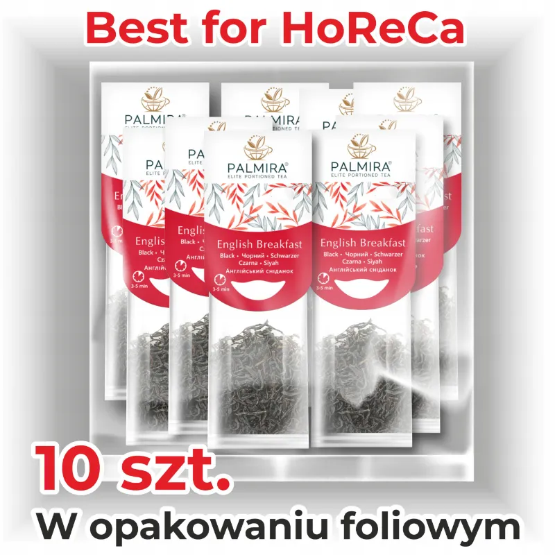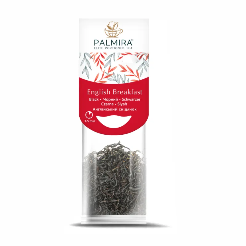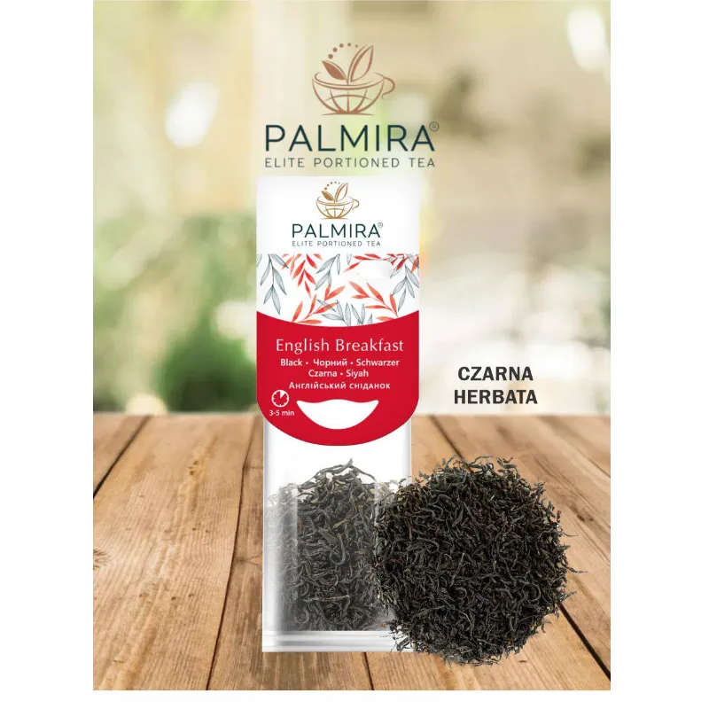 Herbata czarna Palmira English Breakfast to klasyczna mieszanka najlepszych herbat cejlońskich, indyjskich i chińskich. Ma głęboki bursztynowy kolor i intensywny, lekko słodowy smak z nutą drewna i ziemi. Naturalnie pobudza, wspiera koncentrację i doskonale smakuje z mlekiem lub cytryną. Idealna na dobry początek dnia.
