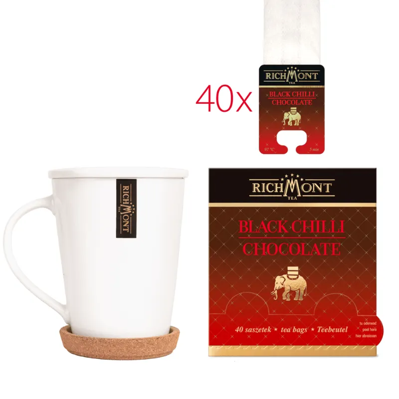 Herbata Richmont Black Chilli Chocolate 40szt porcelanowy zestaw do herbaty