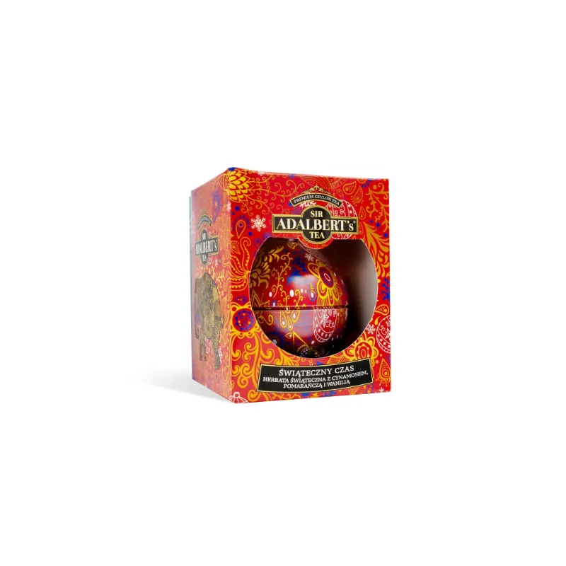 Adalbert’s Tea Bombka Herbaciana Świąteczny Czas (czerwona) to wyjątkowa ozdoba choinkowa wypełniona najwyższej jakości czarną herbatą cejlońską. Aromaty pomarańczy, cynamonu i wanilii tworzą ciepłą, świąteczną kompozycję, idealną na zimowe wieczory i jako oryginalny prezent.