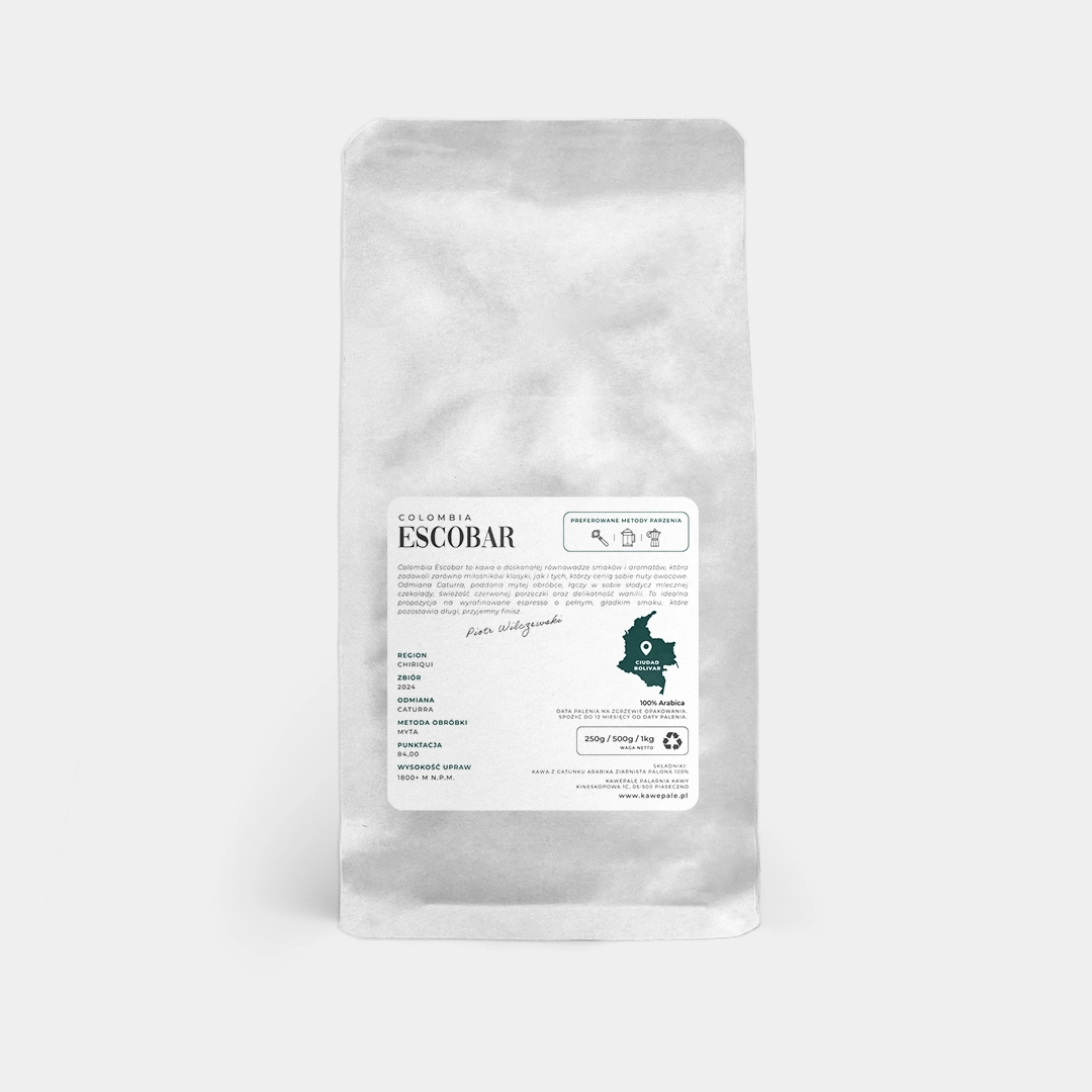 Colombia Escobar to kawa o doskonałej równowadze smaków i aromatów, która zadowoli zarówno miłośników klasyki, jak i tych, którzy cenią sobie nuty owocowe. Odmiana Caturra, poddana mytej obróbce, łączy w sobie bogactwo mlecznej czekolady, świeżość czerwonej porzeczki oraz delikatność wanilii. To idealna propozycja na wyrafinowane espresso o pełnym, gładkim smaku, które pozostawia długi, przyjemny finisz.
