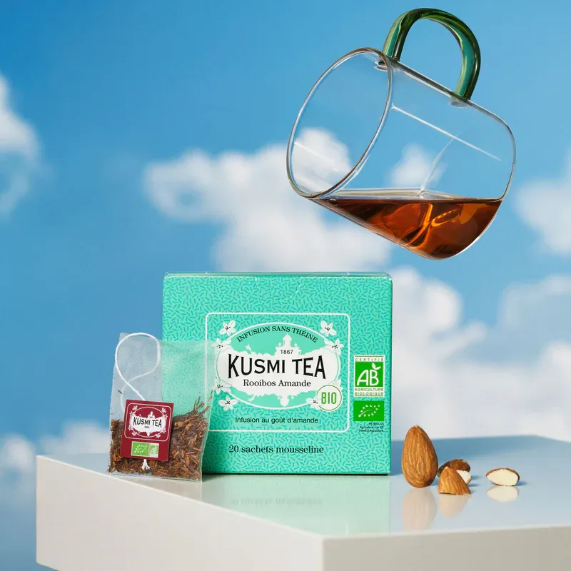 Oryginalna mieszanka Kusmi Tea Almond Rooibos Bio w praktycznych saszetkach. Aromatyczna infuzja rooibos z naturalnym smakiem migdałów, bez teiny – idealna do picia o każdej porze dnia.