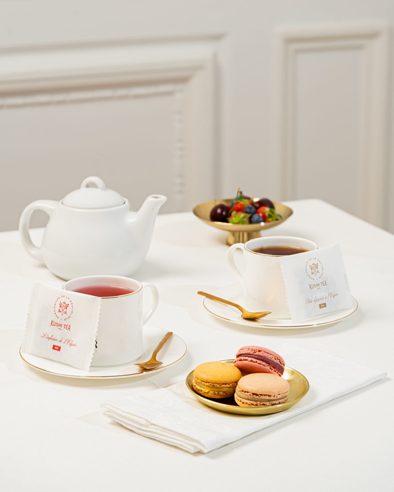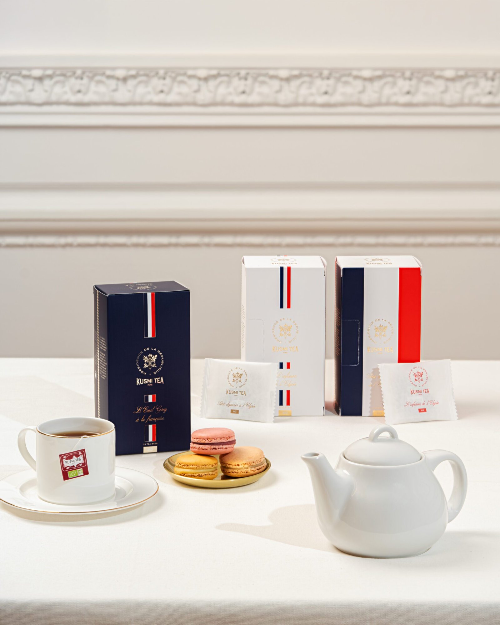 Mieszanka zielonej herbaty, yerby mate aromatyzowana cytryną, trawą cytrynową, kwiatem bławatka i truskawką. Elysée powierzył opracowanie swojej herbaty firmie Kusmi Tea: produkt Made in France, którego sprzedaż przyczynia się do odnowy Pałacu Elizejskiego, 300 lat po jego budowie.