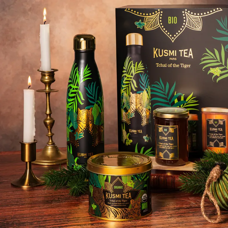 Odkryj dziką elegancję smaku z Kusmi Tea Tchaï of the Tiger Bio – organiczną czarną herbatą z Indii z nutami imbiru, kardamonu, cynamonu i pieprzu. Wyjątkowy, aromatyczny zestaw prezentowy.