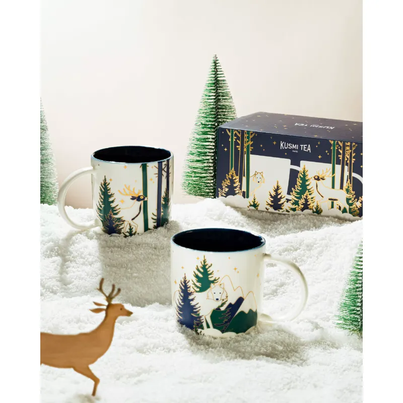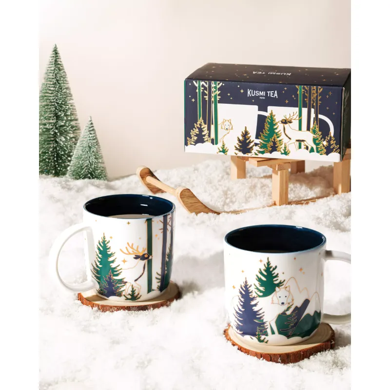 Zanurz się w świątecznym klimacie z zestawem dwóch porcelanowych kubków Kusmi Tea Noël 2024. Wzory wilka i renifera w kolorach głębokiej zieleni i błękitu wprowadzą magię zimy do każdego rytuału picia herbaty. Limitowana edycja – idealny prezent dla miłośników eleganckich detali i świątecznego nastroju.