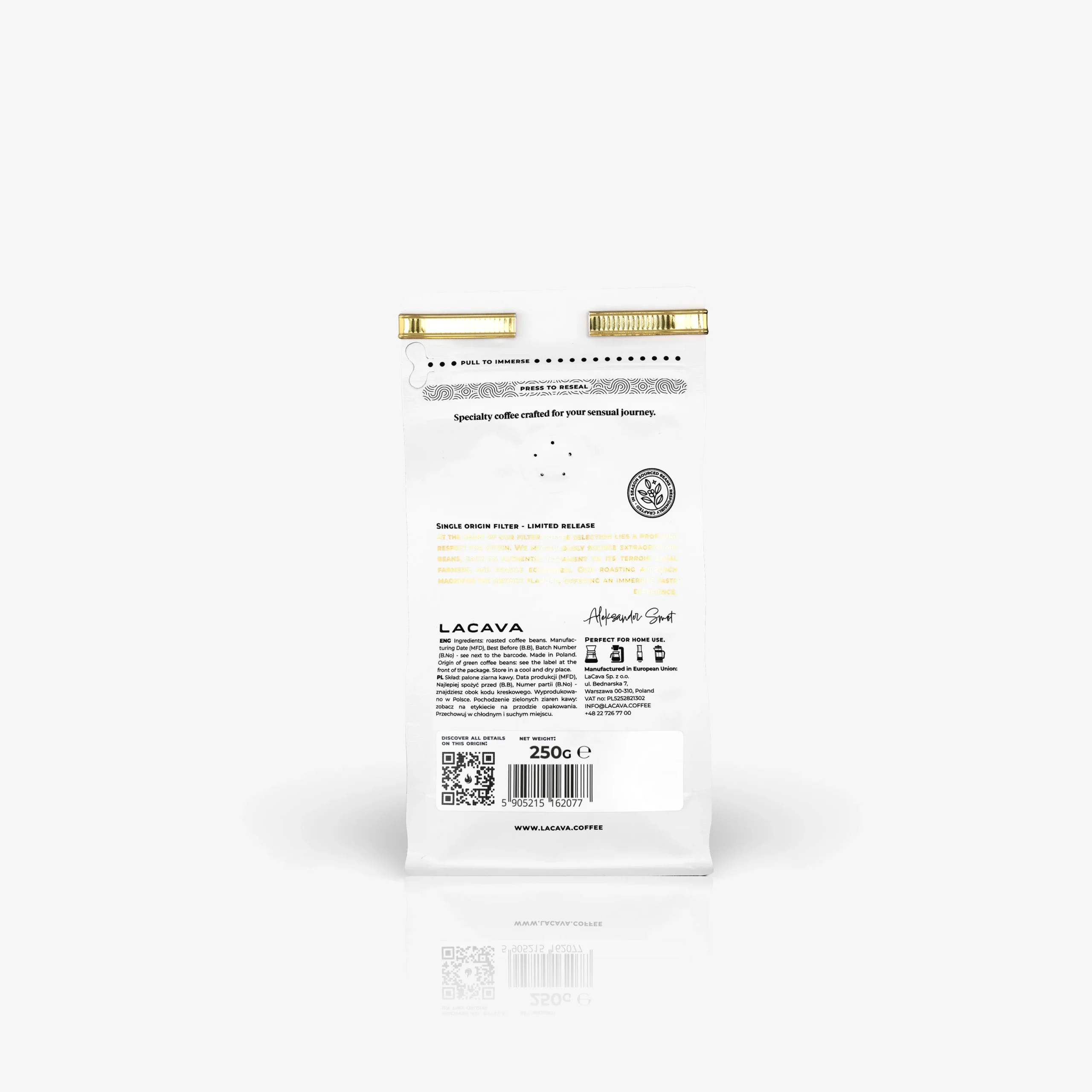 W naszym sklepie znajdziesz kawy z plantacji i palarni z całego świata. Nie brakuje również produktów polskich firm, które naszym zdaniem wyróżniają się wysoką jakością i tworzone są przez pasjonatów w swojej dziedzinie. Jedną z polskich marek, których produkty znajdziesz w sklepie, jest LaCava. Kawa tej firmy polecana jest przede wszystkim do parzenia w ekspresach przelewowych. Jeśli jest to Twoja ulubiona metoda przygotowywania pobudzającego naparu, LaCava jest dla Ciebie!
