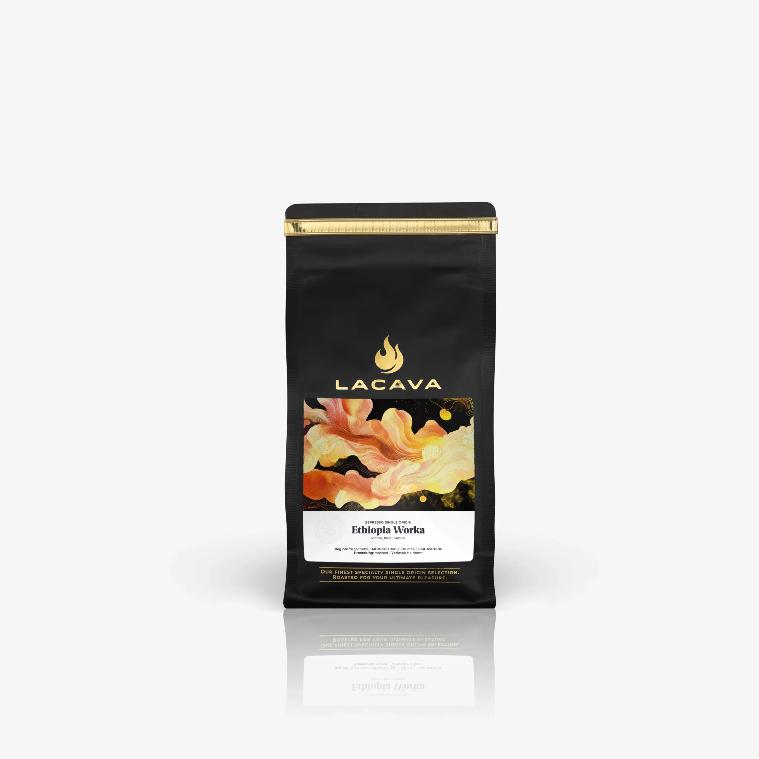 Kawa ziarnista jakości specialty pochodząca z Etiopii, wypalona w palarni LaCava. Palona w średnim stopniu, sprawdzi się w ekspresach ciśnieniowych i kawiarkach. W smaku wyczuwalne są nuty kwiatów, wanilii i limonki.