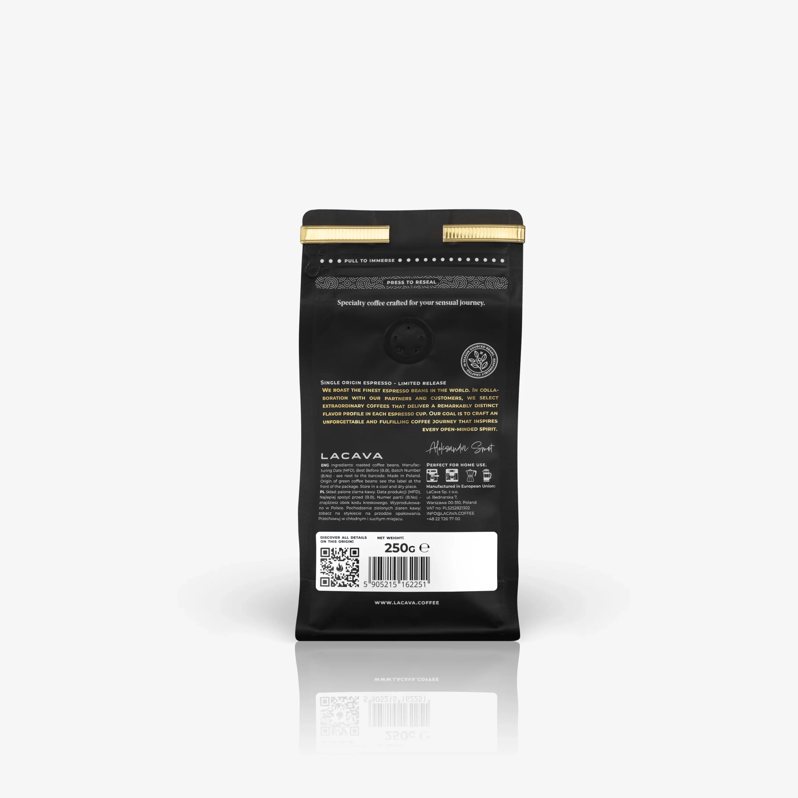 W naszym sklepie znajdziesz kawy z plantacji i palarni z całego świata. Nie brakuje również produktów polskich firm, które naszym zdaniem wyróżniają się wysoką jakością i tworzone są przez pasjonatów w swojej dziedzinie. Jedną z polskich marek, których produkty znajdziesz w sklepie, jest LaCava. Kawa tej firmy polecana jest przede wszystkim do parzenia w ekspresach przelewowych. Jeśli jest to Twoja ulubiona metoda przygotowywania pobudzającego naparu, LaCava jest dla Ciebie!