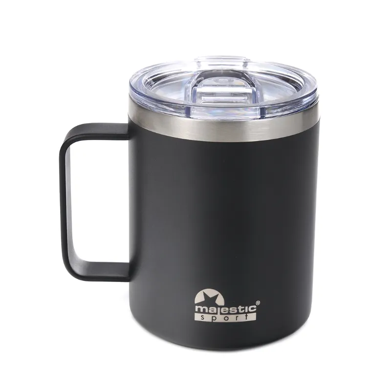 Czarny kubek termiczny Majestic Sport Gump to praktyczny niezbędnik na co dzień – idealny dla osób prowadzących aktywny tryb życia, podróżników i wszystkich, którzy są ciągle w ruchu. Dzięki doskonałej izolacji termicznej utrzyma ciepło kawy do 3 godzin, a orzeźwiający chłód napojów aż do 6 godzin. 🕒