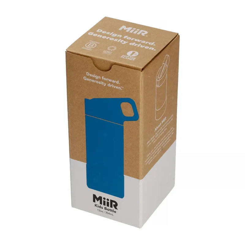 MiiR Kids Bottle 350 ml to stalowa butelka dla dzieci z izolacją Thermo 3D™, wygodnym ustnikiem–słomką i szczelną zakrętką. Lekka, trwała i idealna na co dzień — do szkoły, na trening, na spacer i w podróży.
