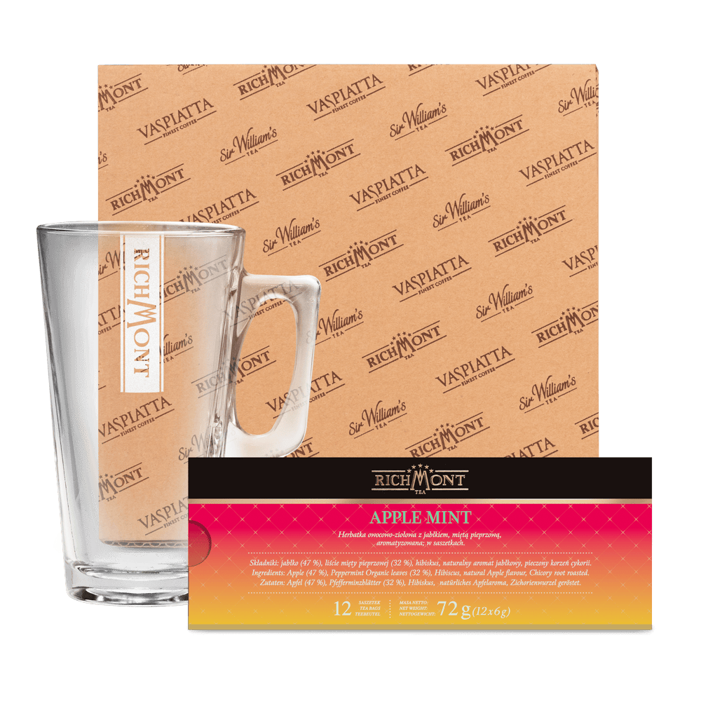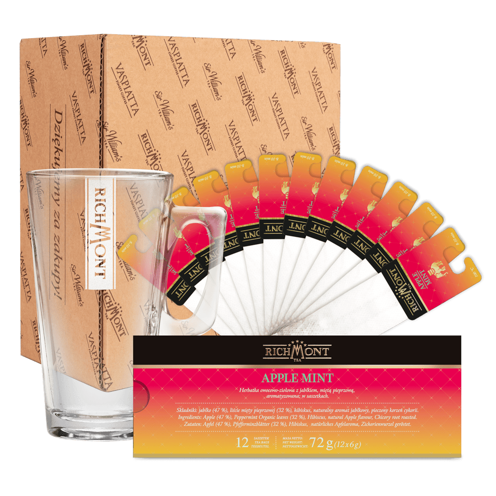 | Zawartość opakowania | 12 saszetek Apple Mint + Szklanka Hot Winter 370ml |