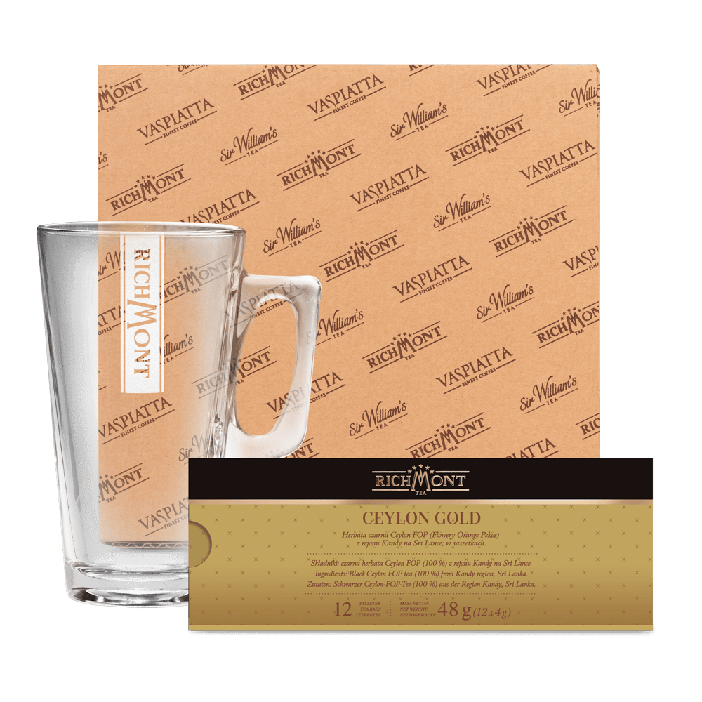 Zestaw został wzbogacony o elegancką szklankę Richmont Hot o pojemności 370 ml, która doskonale wydobywa głębię smaku i aromatu herbaty, dodając każdej chwili wyjątkowej elegancji. To nie tylko zestaw herbat – to prawdziwa podróż po tradycji i smaku, idealna zarówno na kameralne spotkania, jak i wyjątkowe okazje.