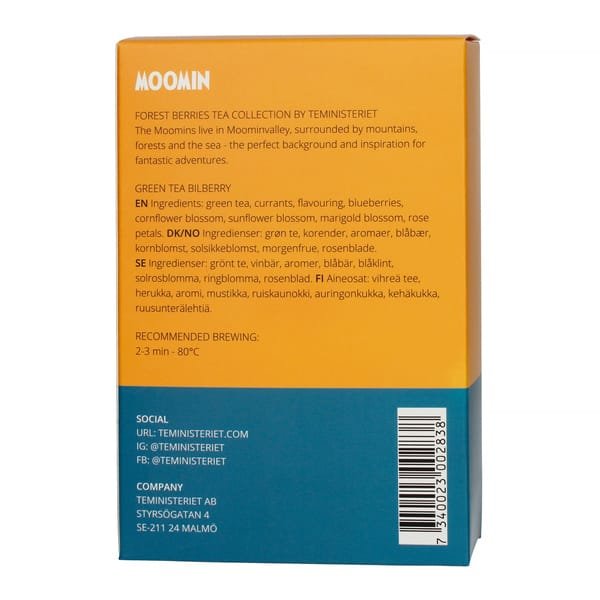 Moomin to seria sypanych herbat z różnego rodzaju jagodami, stworzona przez szwedzką markę Teministeriet. Mnóstwo naturalnych składników, ogrom smaku i moc aromatu – każdy łyk to mała przygoda w krainie Muminków!