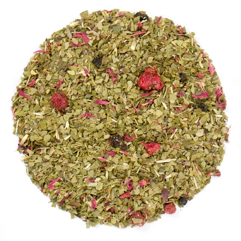 • brazylijska yerba mate z maliną, jagodą, czerwoną porzeczką i bławatkiem