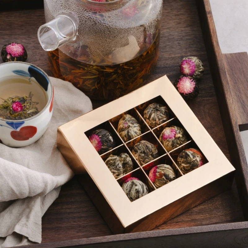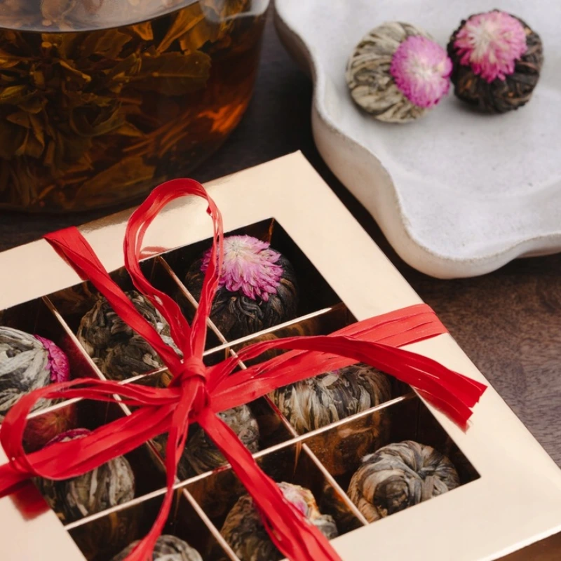 Podaruj chwilę prawdziwego relaksu z naszym wyjątkowym zestawem dziewięciu herbat kwitnących, które rozkwitają w gorącej wodzie, tworząc niepowtarzalne kompozycje smakowe i wizualne.
